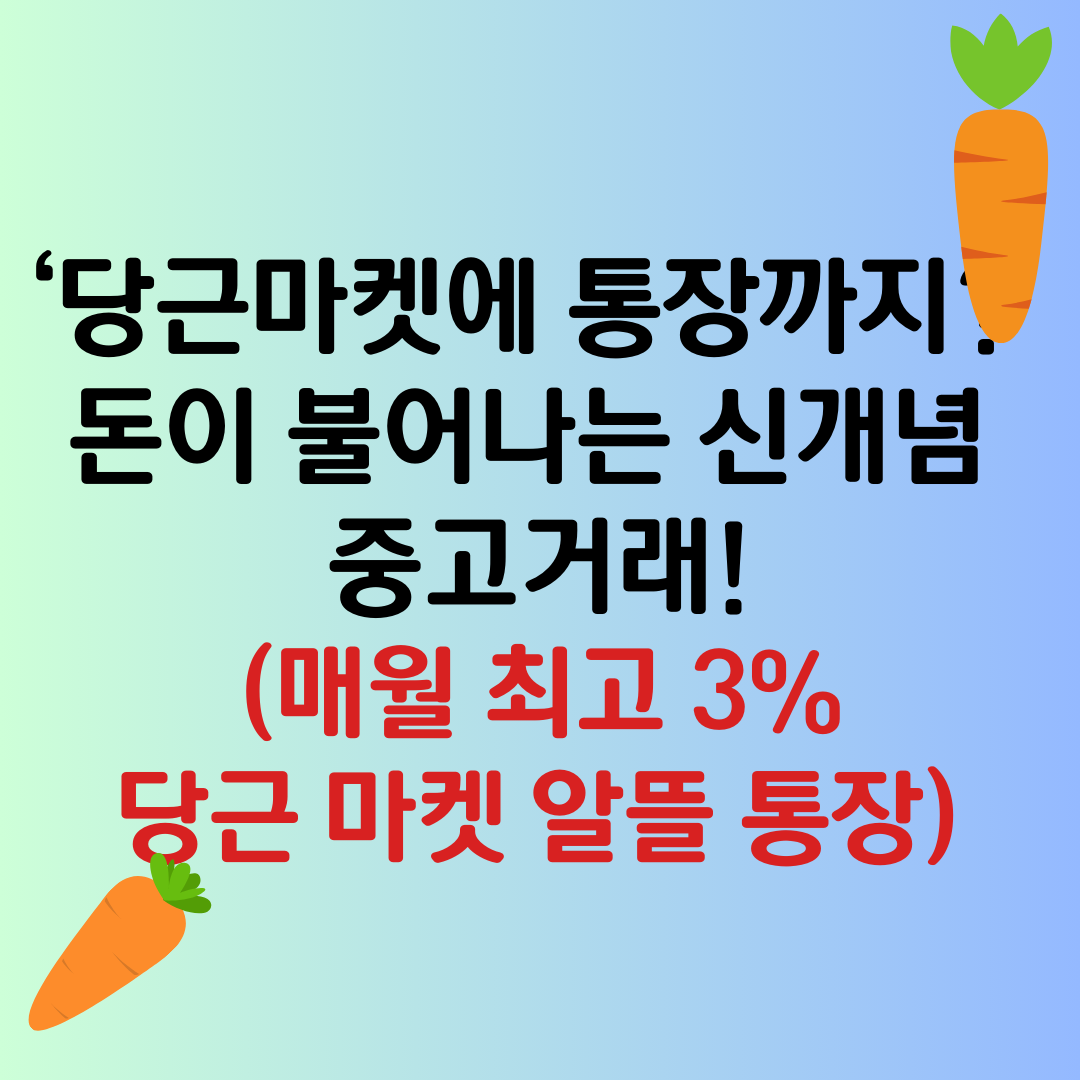 요즘 중고거래 한 번쯤 안 해보신 분 계실까요?“이건 그냥 버리긴 아깝고…” 하며 당근마켓 앱을 켜보는 게 일상이 된 분들이 많을 텐데요.그런데, 이 당근마켓이 이제는 통장과 카드까지 출시했다고 합니다. 진심으로 혹하지 않을 수 없는데요. 바로 요즘 계속 당근에서 광고하고 있는 이 상품은 당근 마켓의 통장 ‘당근머니 하나 통장 & 체크카드’ 입니다.중고거래하면서 모은 돈이 은행 이자처럼 불어난다면?이거, 생각보다 진지하게 해 볼만한 시스템이라고 생각합니다.당근 마켓의 통장 당근 머니 통장 관련 정보를 정리했으니, 꼭 한 번 확인해 보시길 바래요. “중고거래로 번 돈, 그냥 두지 마세요!” 사실 당근마켓으로 거래하면서 생긴 소소한 수익,대부분 그냥 계좌로 옮겨 쓰거나, 당근머니로 적립된 채로 남겨두시는 ..