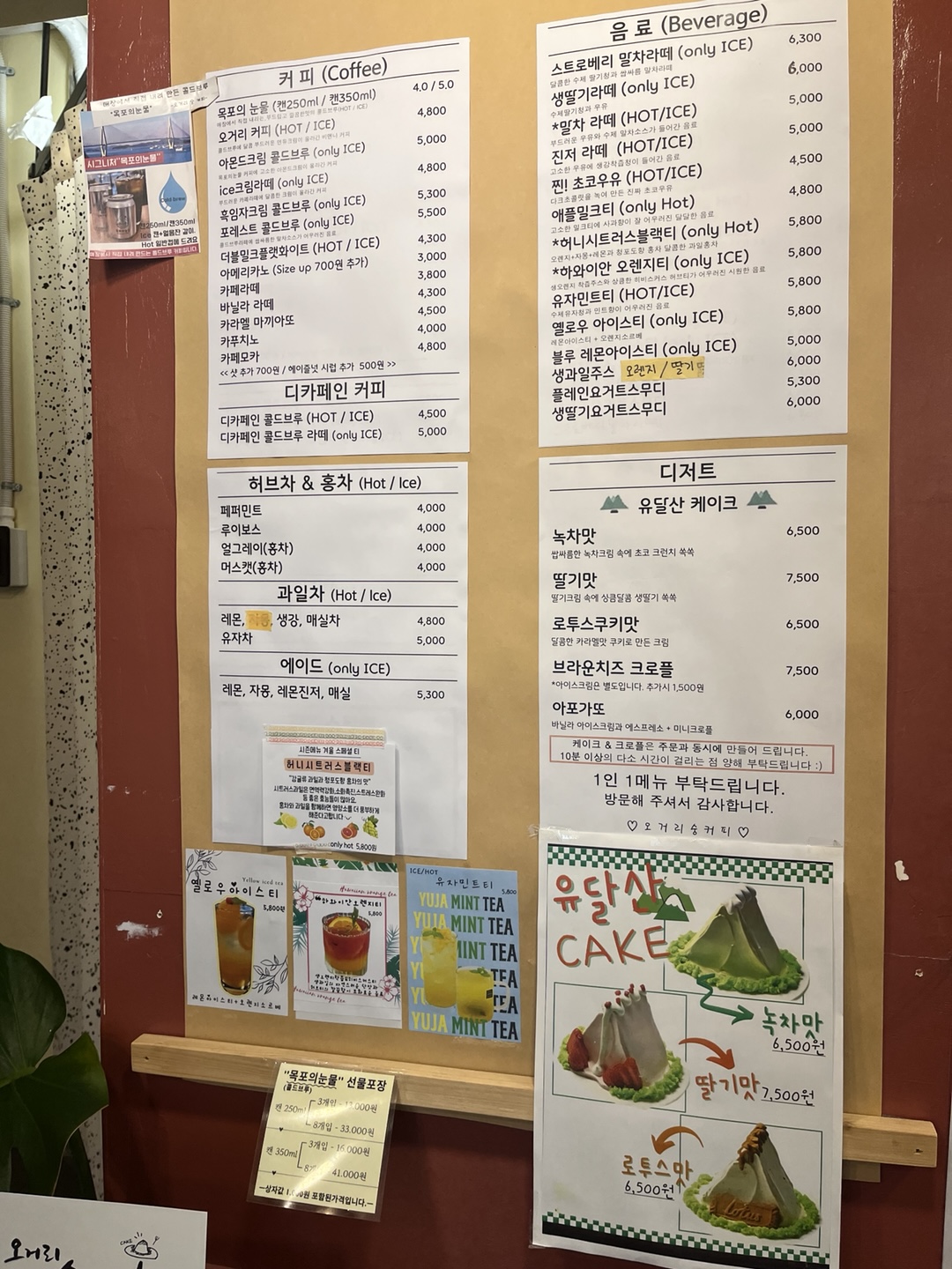오거리숭 커피는 유달산 케이크가 유명하죠..