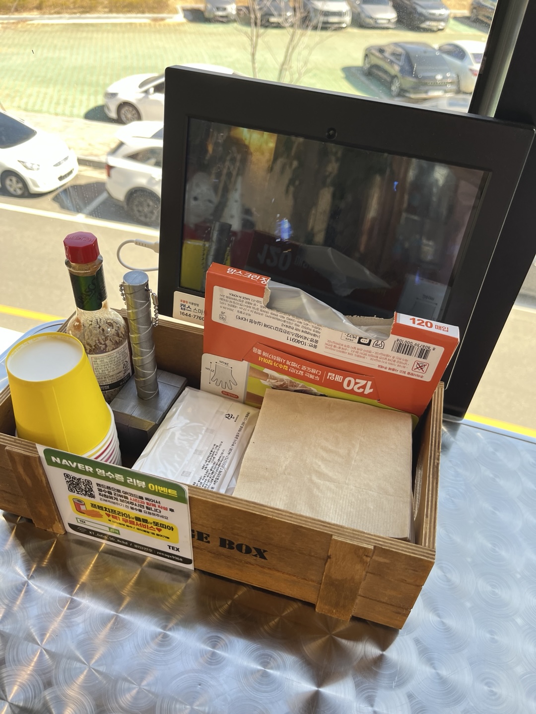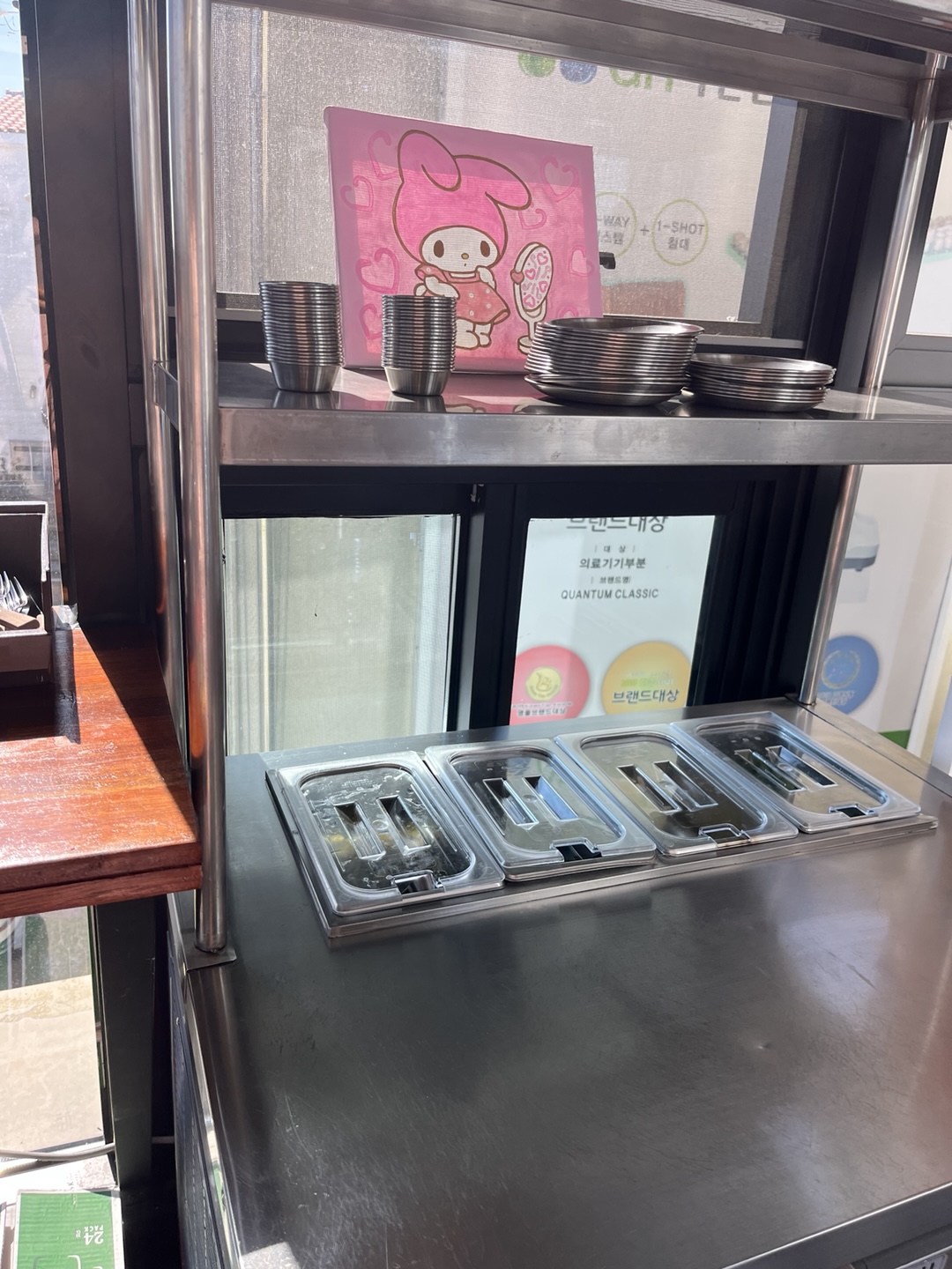 음료랑 컵 포크 등등, 셀프 코너를 이용하구요.